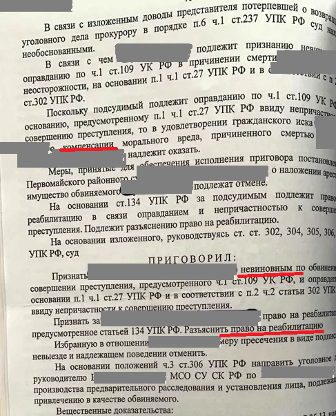 Главврач узнала об этом только после смерти ребёнка. Адвокат, проведя ряд экспертиз и ходатайств, в следственном процессе доказал, что клиент не нарушал должностных обязанностей. В этой связи уголовное дело было прекращено.