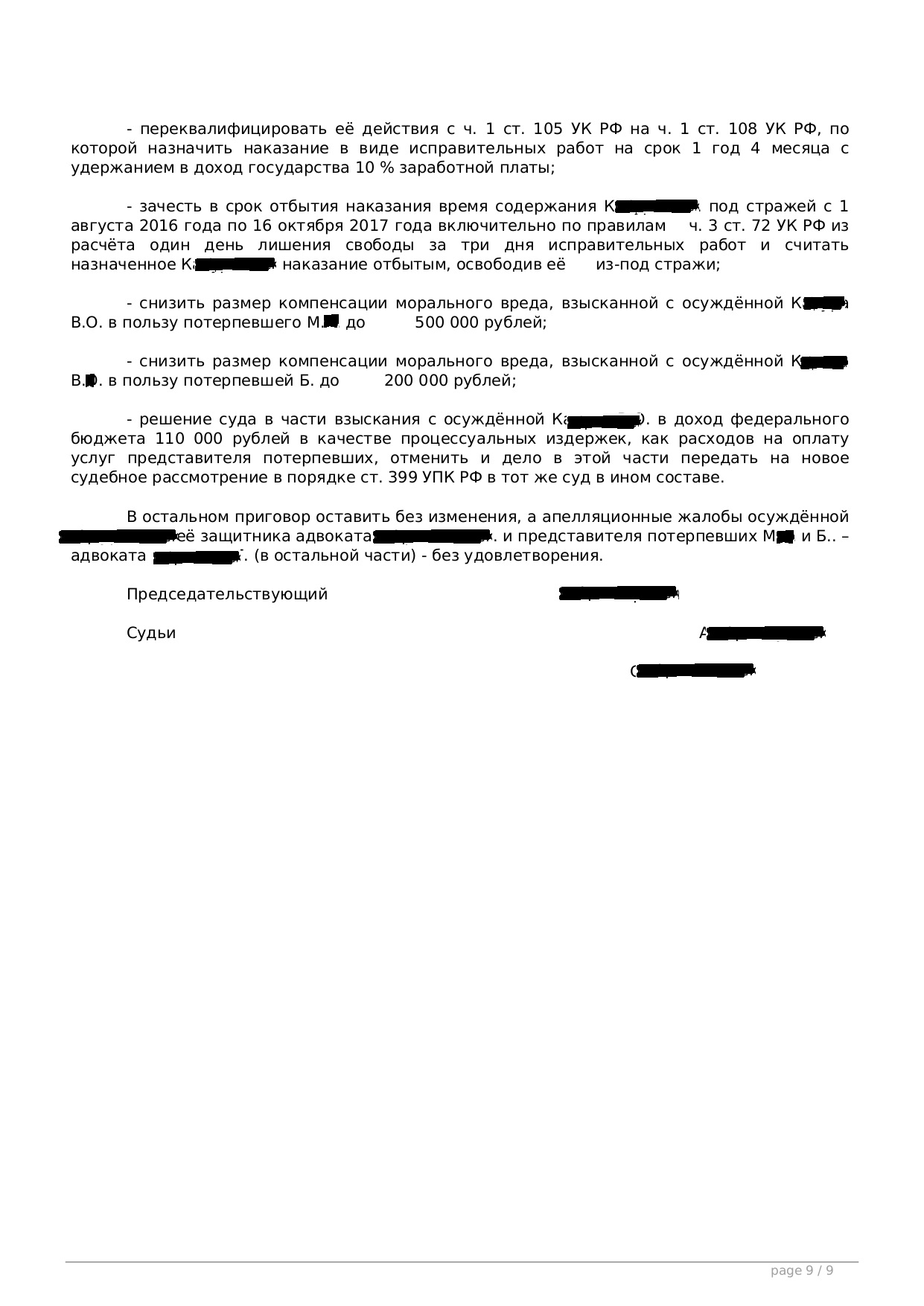 Адвокат по апелляции ст. 105 - 108 УК РФ